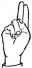 На ћирилици написано ДАРИЈА ДАБИЋ састоји се из 11 слова [?]. Исписано ћириличном једноручном азбуком за глувонеме: